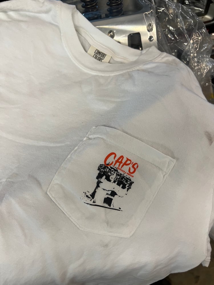 Cap’s new high velocity pocket t printed on comfort colors in white!